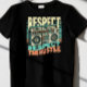 Här är din höft-skutt- och gatuinspirerade t-shirt-design med en boombox med graffiti-stil typografi som lyder "Respect the Hustle" 🎤 🎶 🔥
