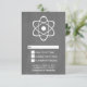 Reaktionskort från Bröllop i klack och njud, med en enkel atomiskt symbol i vitt på en kritbordsbakgrund. Det här bröllopet OSA för geeky och roligt är perfekt för vetenskapsentusiastparet! Enkel att anpassa, lägg bara till informationen om bröllop i de utrymmen som finns. Klicka på Anpassa om du vill söka efter fler anpassningsalternativ.