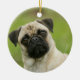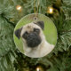 Rest upp tittar kamera för mops huvud julgransprydnad keramik