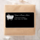 En uppsättning enkla silvergods på en bord-napkin i svartvitt med utrymme för ditt namn i skript och adress i anpassningsbar i retro-serif-text i svart. Klicka på Anpassa om du vill ändra typsnitt, färg i bakgrunden, markera storlekt och mycket mer, även spara din design för senare.