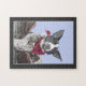 Jigszasmunstycken är familjens roligt. Njut av den här med ett foto av en svart och vit Heeler-blandning av Gräns med färgad röd halsduk som ändras till en färgpenna. Klicka på Anpassa om du vill lägga till text i teckensnittet stil, storlek och färg som du vill ha. ©Patricia AZ Phillips