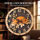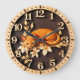 Add a warm and friendly touch to your home with this beautiful wall clock featuring a high-definition image of an orange tabby cat. The peaceful feline is shown resting comfortably on a rustic branch, surrounded by elegant, cream-colored flowers and leaves. This design is set against a rich, dark-textured center that provides a striking 3D-style depth to the artwork. The outer rim features a light wood grain print with bold, easy-to-read numeric markers and clean dot accents, making it a functional and attractive piece for any room. This high-energy timepiece captures the quiet charm of a favorite pet and the beauty of nature in one polished package. It is an excellent decorative focal point for a kitchen, bedroom, or living area, perfect for cat lovers who appreciate a sophisticated rustic aesthetic.
