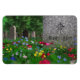 En tyst kyrkogård i vår fyllde en upplopp av kornblommor, poppies, dandelioner och många andra blommor sprinklade genom gröntens gräs och bland gravstenarna. I förgrunden finns ett gravsten som är graverat med ett keltiskt kor och ett ord "Resurgam" - latin för "Jag skall stiga upp igen".