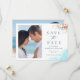 Resursmålet Spara datumkortet är ett häpnadsväckande sätt att tillkännage ditt kommande havsområde i firande. Med mjuk vattenfärgskonstruktion i blå, teal, turkos och persikofärgad nyans fångar kortet perfekt charmen från en bröllop vid sidan. Fintvätt i blommigten gör att eleganten trycks in, medan alternativet att inkludera ett foto i personligen gör det unikt för dig. Den här designen passar perfekt för destinationsbröllop och passar ihop kustelegans med modern sofistikering för att ange tonen för din speciella dag. Om du vill ha hjälp med anpassning eller behöver hjälp med att förfina designen kan du fråga dig - jag är här för att hjälpa till!