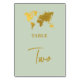 En salvia grön och guld destination bröllop pass design med guld världskarta, flygplan och reseelement. Denna design är idealisk för alla vår-, sommar-, höst- och vinterdestination bröllop. En elegant salvia grön och guld bröllopsresedesign med pass layout, världskarta och anpassad bild av paret. En modern destination bröllop bord nummer design med eleganta element. Matchande bröllopsinbjudningar och andra brevpapper föremål finns också tillgängliga. Anpassa numret och köp varje bord nummer individuellt beroende på hur många bord nummer du behöver.