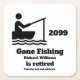 Make a splash with our Gone Fishing retirement party coasters, blending modern aesthetics with a touch of whimsy. The graphic of a fisherman in a small boat captures the essence of the occasion, making it the perfect choice for those who love angling adventures. Add your personal touch, and set sail for a retirement party like no other!