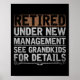 Retired Under New Management See Grandkids Funny R Poster
