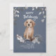 Den här söta vattenfärgsdesignen har en söt liten Golden Retriever-valpen sitta på en säng av vilda blommor, vintergröna och lövträd och ord, Glad helg. Anpassa med din familj namn, år och ditt meddelande på baksidan.