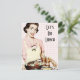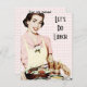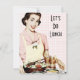 Skapat från en vintage på 1950-talet illustration av en kvinna som bär på matbrickor och drycker. Anpassa den med din egen text. Retro coola!