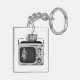 Carry a piece of broadcast history wherever you go with this retro television keychain. This durable accessory features a miniature monochrome 1950s portable tv graphic with a surrealist edge, making it easy to identify your keys with style. A perfect small gift for fans of mid-century modern design and vintage technology, this black and white charm adds a touch of kitsch flair to any set of keys or backpack. Whether you are a film enthusiast or a lover of antique electronics, this sturdy keychain is a practical way to showcase your appreciation for the golden age of media.