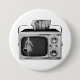 Make a statement with this retro-inspired pin-back button featuring a surreal 1950s portable tv design. This small but mighty accessory showcases a monochrome vintage aesthetic that is perfect for customizing denim jackets, backpacks, or hats. A great gift for collectors of mid-century kitsch and media history enthusiasts, this black and white badge adds a touch of artistic flair to any outfit. Use it as a unique party favor for 50s themed events or as a subtle way to display your love for antique electronics and classic broadcast style.