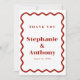 Bring timeless charm to your post-wedding gratitude with this Retro 1950s Wavy Edge Thank You Card. Featuring a clean white background framed by a deep dark red wavy border, this design nods to mid-century style while keeping things elegant and fresh.