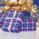 En geometrisk mönster inspirerad av 1960-talet för att slå in gåvor som ges till någon retrokärleksfull person. Den moderna utformningen av stil i mitten av århundradet i tårblått, mörk äggplanta och magenta med mjuk rosa och vita accenter gör en underbar gåva som är en gåva för vilken färg-älskande verkligen som helst. Perfekten kan också välja använda för hantverk om du vill ha en 60-talskonstruktion.