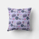 Retro blue och rosa Vinyl Records, boombox, video gaming och kassettband födelsekuddar.