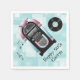 pappra blöjor från roligt party som gjorts i en akvblått retro mönster, med bilder av en rosa och blå jukebox, en LP-post och musik noter. Anpassa den svarta texten för dina 50-talares stil firande. Det finns tillgång till matchande pappert tallrikar som ser ut som en vinylpost.