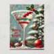 Retro 50-talets Cranberry Snowflake-jul Martini Vykort