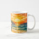 This 1960s inspired sunset scene features a colorful glowing sky with waves gently rolling onto the beach as the sun dips below the horizon. Complete with a painted hippie travel van, surfboards and guitar. The only thing missing is you! Made for beach bums, surfers, travelers, dreamers, and anyone who feels most alive chasing the next horizon. Show off your love for coastal life and add vintage vibes to your coffee time with this groovy coffee mug.