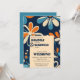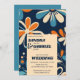 Retro 70-tal - teal navy blue shades daisy blommor bröllop-redigerbar mallinbjudan direkt digital nedladdning, modern inbjudan till upprepning av bröllop avböjd färg