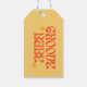 Retro 70-talets senap Orange Hippie Groovy Baby Presentetikett