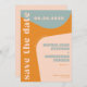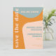 Retro 70-tals dammig blå orange rosa bröllop spara datumet