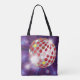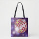 Bär dina nödvändigheter med stil i denna retro-diskokula-totebag. Denna praktiska och fashionabla accessoar har en färgrik röd och lila spegelkulsgrafik med gnistrande ljuseffekter, vilket gör den till ett utmärkt val för gymmet, matvaruhandling eller en dag på stranden. Den groovy 70-talsinspirerade designen är perfekt för dansentusiaster och älskare av vintage-estetik. Tålmodig och iögonfallande ger denna funky återanvändbara påse en touch av diskofeber till dina dagliga ärenden.