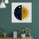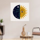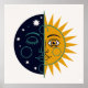 Retro 70s Celestial Sun Moon Split Face Art Print Poster
