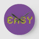 Håll koll på tiden med stil med denna "EASY" 3D pixelart väggklocka. Den slående neon-gröna och rosa typografin sticker ut mot en djup lila bakgrund och skapar en djärv, teknik-inspirerad mittpunkt för alla rum.