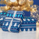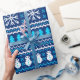 Retro 8-bitars snögubbe snöflinga Julgran mönster i vitt och blues.