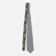 Subject: A necktie featuring a dense, colorful, abstract pattern on a pale gray background.
