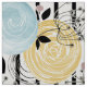 Retro, abstrakt blommor, återblommor, ro, ro, abstrakt, strimlad, blå, svart , gult , grönt