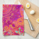 Retro Abstrakt Coral och Lila Marble Swirl Kökshandduk