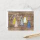Unik, elegant, trendig, snygg och dekorativ högtidskort med roliga abstrakta julgranar på en falsk väderbiten träfarmhus-shiplap-stil med trästrukturmönster. Denna fantasifulla hipsterdesign är gjord för den som älskar december-högtiden eller söta grafiska konstillustrationer. Med utrymme för att anpassa eller personliggöra med ditt familje- eller individuella namn och det årtal du väljer, samt en anpassningsbar säsongsdikt på baksidan av kortet.
