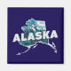 Fyrkantig kylskåpsmagnet med en retro stil scenisk silhuett av delstaten Alaska på en mörkblå bakgrund (som kan tas bort eller anpassas till en annan färg som du väljer). Perfekt för souvenirer från semester, bröllopspresenter (med personlig text) och mer.