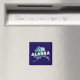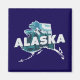 Fyrkantig kylskåpsmagnet med en retro stil scenisk siluett av delstaten Alaska på en mörkblå bakgrund (som kan tas bort eller anpassas till en annan färg som du väljer). Bra för souvenirer från semester, bröllopspresenter (med tillagd personlig text) och mer.