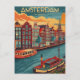 Ta ett viskigt resa i tid med det här snygga vykortet! Lägg er i charmen med Amsterdams ikonekanaler och de pulserande blomstermarknaderna, allt i en fängslande reflektor stil. Denna nostalgiska illustration visar upp blomstrande tulpaner, charmerande husbåtar och stadens unika atmosfär.