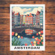Capture the charm of Amsterdam with this beautifully illustrated vintage-style postcard. Featuring the city's iconic canal houses, bicycles, and peaceful waterways, this postcard is perfect for travel enthusiasts, collectors, or as a keepsake from the Netherlands. Send a piece of Europe or display it as unique wall art.
