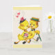 Vintage / Retro jubileum eller bröllopskort. Förtjusande små figurer som går arm i arm och är mycket förälskade! Hjärtan, blommor och sötma! Perfekt kort för att fira kärlek!
