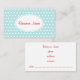 En lätt akva och vit polka punkt mönster dekorerar detta professionell affärskort. Anpassa det här affärskortet till stil efter kostym dina behov. Använda det här affärskortet för en bageri, catering, katedral, kock, glass, glass, glass shop, cosmetolog, avtalade tider, salon osv..