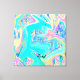 Retro Aqua Blue Liquid Art on Abstrakt Hydrangeas Canvastryck