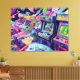 Retro arcade machines are nestled among vibrant planets and stars. The scene combines nostalgia with a colorful cosmic theme.