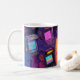 A group of vintage arcade machines stands illuminated by vibrant neon lights. The scene is set against a backdrop of a starry galaxy, creating a nostalgic yet futuristic atmosphere.
