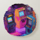 En grupp vintage maskiner är belyst av vibrant neon ljus. Scenen ställs mot en bakgrund av en stjärngalaxi som skapar en nostalgisk atmosfär i futuristiskan.