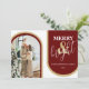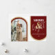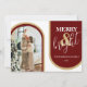 Dessa minimalistiska retro-juldkort är perfekta för att önska god jul. Kortet har ett retro-tema med röda och gyllene nyanser. En modern julhälsningsmall, ditt foto inframat med valv i moderna röda och gyllene toner. Teckensnittsstilar och färg kan ändras genom att klicka på länken Anpassa ytterligare efter anpassning.
