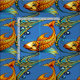 Denna färgrika retrodesign härstammar från ett svartvitt Art Nouveau-mönster med koi-fiskar och sjögräs av Mabel Syson, funnet i en antikkuriosa. Du kan anpassa bakgrundsfärgen.