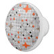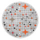 Snyggt om trenden mönster inspirerad av tidigare modernt halvsekelmönster med atomiska stjärnformer på en vit basket-våg i ton av orange, grått, svart och vitt