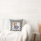 Retro-kudden, med svart och vitt schackbräde och en söt målad hipsterpapp! Anpassa med ditt namn skrivet till hund sida, om du vill.
