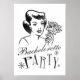 Retro Bachelorette T-Shirts & Gifts for brides, bridesmaids, maid of honor m.fl. Med 1950-talets illustration av en brud eller en brud och läser "Bachelorette Party" i reflextypsnitt.