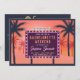 Retro roadside billboard themed bachelorette weekend party invitation. Bright bold colors and neon lights are used to glam up the invite. Includes a bit of vintage vibe. Appropriate for tropical destinations with palm trees and cocktails. Personalize text on front and back.