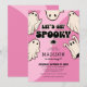 Lås upp roliga stunden med våra nya födelsedagsinbjudningar till barnkalas på Halloween! Designade med en söt rosa bakgrund, roliga retro-spöken och den lekfulla texten 'Låt oss bli spökiga.' Den moderna textmallen är enkel att anpassa. Se hur gästerna blir mer och mer upphetsade när de inte kan vänta med att få tag i dem!