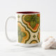 En accentmugg med ett basilika bladsmönster med retroinspirerade kurvor i gröna, gyllene, krämfärgade och roströda nyanser. Fräsch, dekorativ och lätt att använda, denna design fungerar bra för kaffe, te, köksdekoration och presentidéer för örtälskare och hemmakockar.